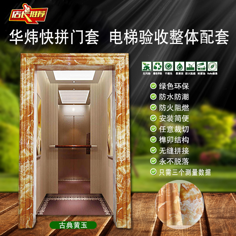 電梯環(huán)保“快裝”門套,是繼電梯無(wú)線五方對(duì)講系統(tǒng)后的又一創(chuàng)新性的電梯配套產(chǎn)品,電梯快裝門套綠色環(huán)保、防水防潮、防火阻燃、榫卯結(jié)構(gòu)、任意切割、無(wú)縫快拼、絕不脫落。